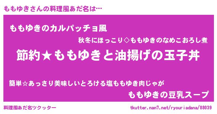 | 意味不明あだ名 | 『ペロリンももゆき』『永久保存ももゆき』 |