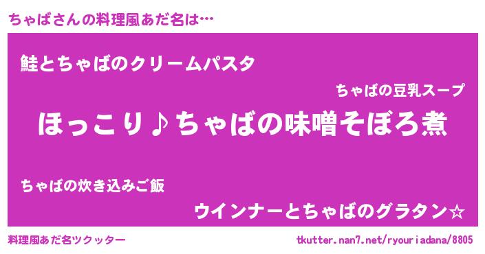 | ヒーロー風カッコイイあだ名 | 『スーパーチャバ』『天空の使者ちゃば』 |