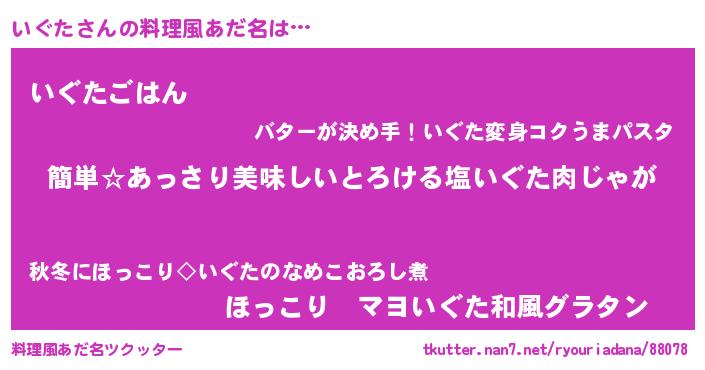 | 意味不明あだ名 | 『永久保存いぐた』『なめこ科いぐた属』 |