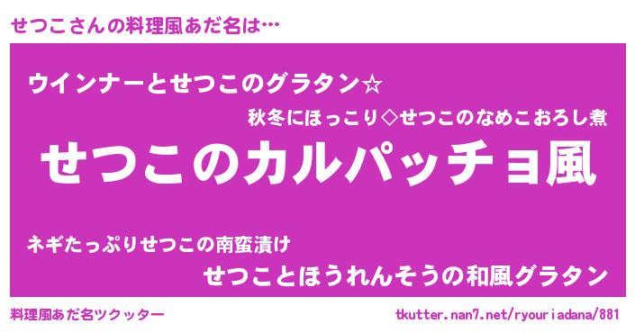 | ヒーロー風カッコイイあだ名 | 『仮面セツダー』『ウルトラせつこマン』 |