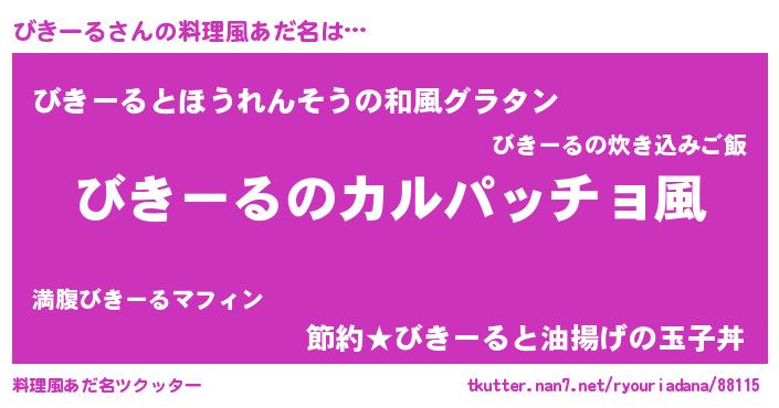 | 男性向けラノベタイトル風あだ名 | 『魔弾の王とびきーる』『びきーるの憂鬱』 |