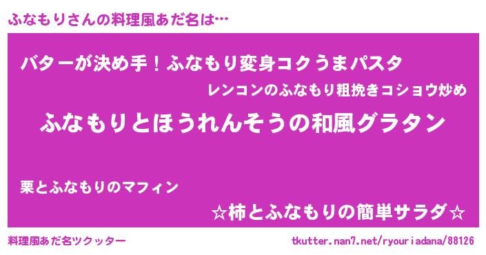 | ヘコむあだ名 | 『なまこ酢』『ふなもー』『ふなお』 |