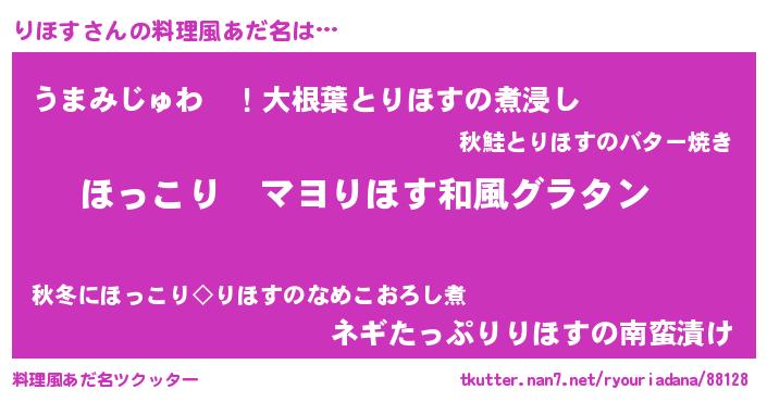 | 男性向けラノベタイトル風あだ名 | 『この素晴らしい世界にりほすを!』 |