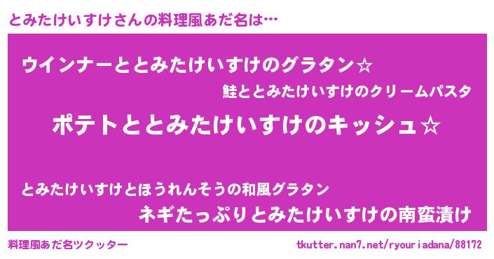 | 男性向けラノベタイトル風あだ名 | 『とみたけいすけの嫁は女の子じゃないと思った?』 |