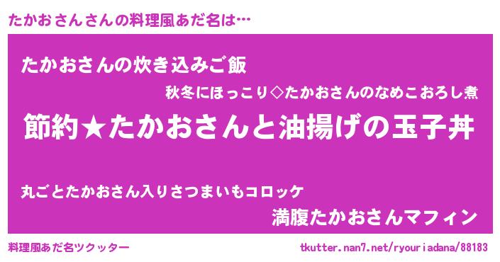 | ヘコむあだ名 | 『たかもー』『たかおさん(小並感)』 |