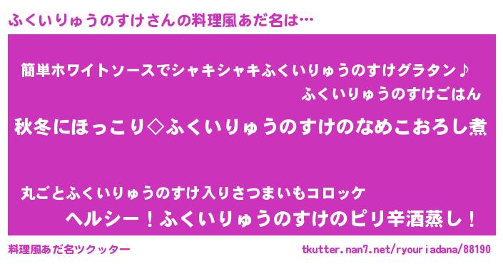 | 男性向けラノベタイトル風あだ名 | 『ふくいりゅうのすけに滅ぼされるだけの簡単なお仕事です』 |