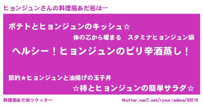 | ヒーロー風カッコイイあだ名 | 『最強戦士ヒョンジュン』『銀牙騎士ヒョ』 |
