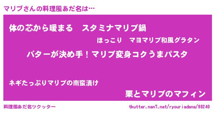 | 女子向けラノベタイトル風あだ名 | 『マリブ恋絵巻』『マリブの雑貨屋さん』 |