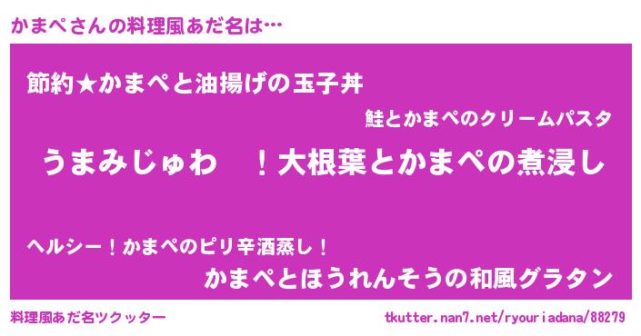 | 恥ずかしいあだ名 | 『かまっちょ』『プリティーかまペ』 |