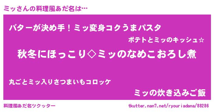 | ヒーロー風カッコイイあだ名 | 『天空の使者ミッ』『幻影騎士ミッ』 |
