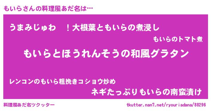 | ヘコむあだ名 | 『レバニラ』『もいにゅー』『もいお』 |