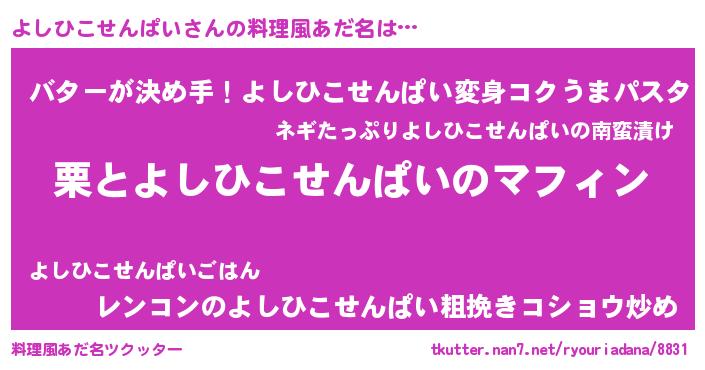 | ヘコむあだ名 | 『よしふぇ~』『よしひこせんぱい(笑)』 |