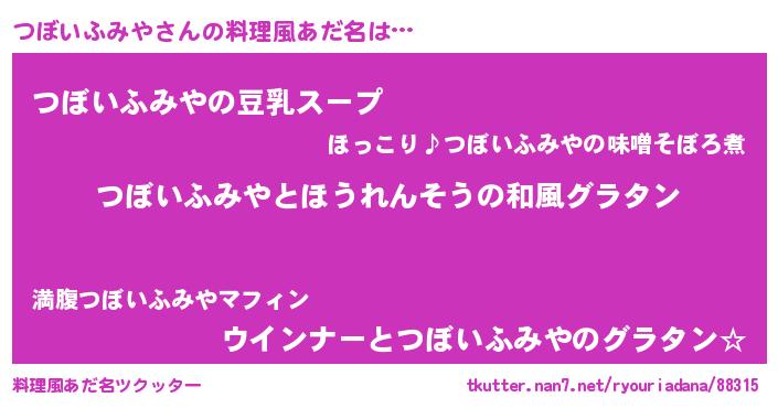 | ヘコむあだ名 | 『つぼを』『つくし』『つぼにゅー』 |