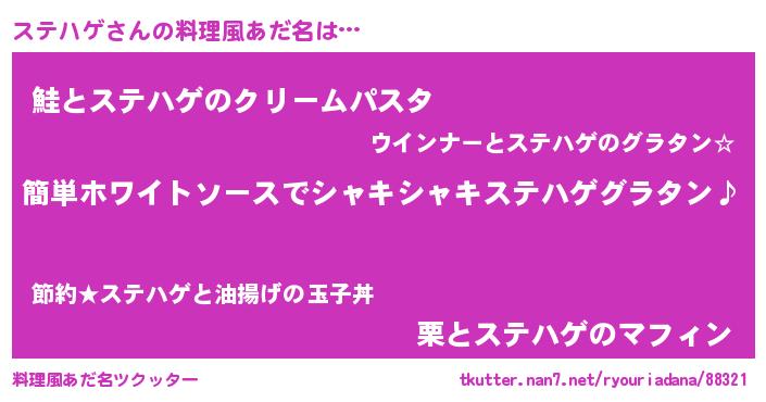 | 男性向けラノベタイトル風あだ名 | 『ステハゲの嫁は女の子じゃないと思った?』 |