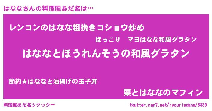 | ヒーロー風カッコイイあだ名 | 『最強戦士ハナナ』『仮面ハナダー』 |