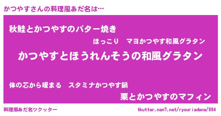 | ヒーロー風カッコイイあだ名 | 『ネオカツヤス』『仮面カツダー』 |