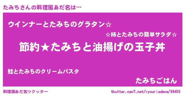 | 男性向けラノベタイトル風あだ名 | 『たみちの憂鬱』『タミチスレイヤー』 |