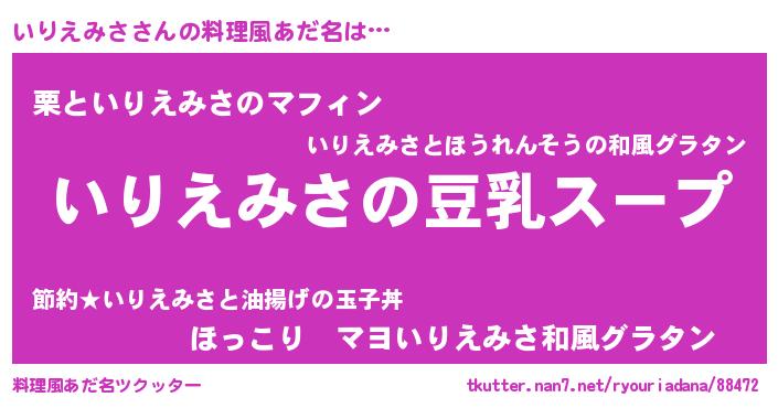 | 胡散臭い通販商品みたいなあだ名 | 『信頼と実績のサプリメント…その名も「いりえみさ」』 |
