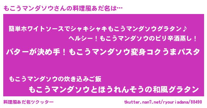 | 女子向けラノベタイトル風あだ名 | 『もこうマンダソウ恋絵巻』 |