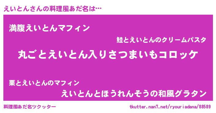 | 意味不明あだ名 | 『住所不定無職えいとん(43歳)』 |