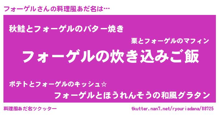 | 意味不明あだ名 | 『永久保存フォーゲル』『自称フォーゲル』 |