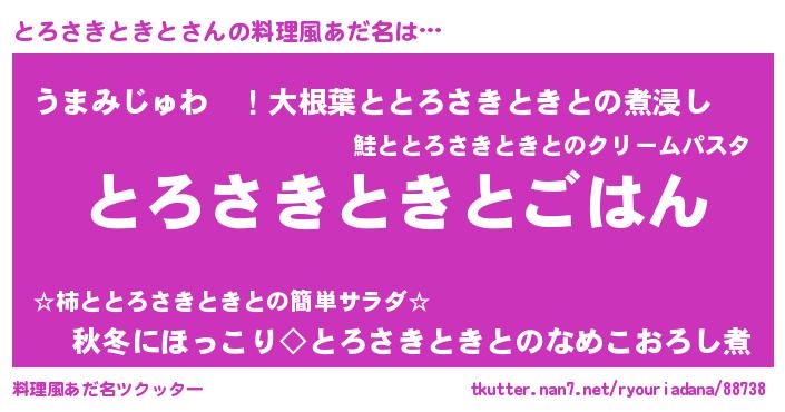 | 男性向けラノベタイトル風あだ名 | 『転生したらとろさきときとだった件』 |