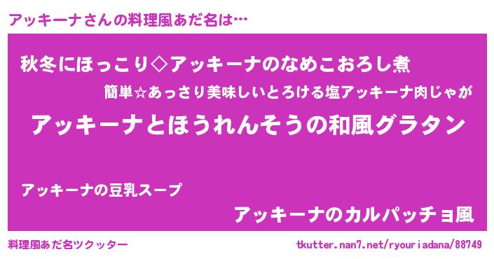 | 意味不明あだ名 | 『ニラ科アッキーナ属』『自称アッキーナ』 |