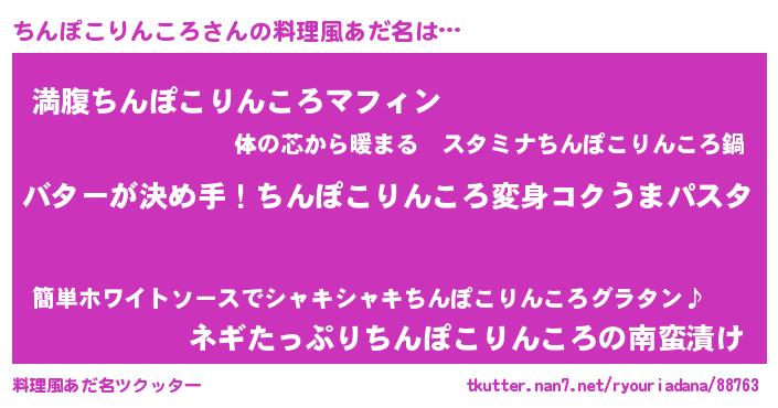 | ヘコむあだ名 | 『ちんぽこりんころ(笑)』『ちんにゅー』 |