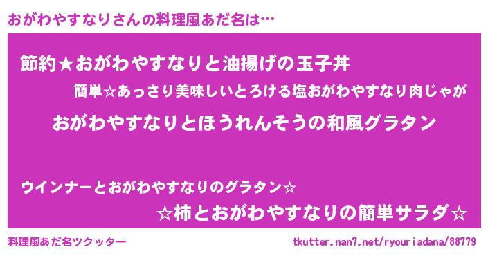 | 男性向けラノベタイトル風あだ名 | 『転生したらおがわやすなりだった件』 |