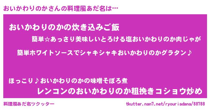 | 胡散臭い通販商品みたいなあだ名 | 『全米が絶賛したサプリメント…その名も「おいかわりのか」』 |