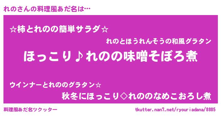 | 男性向けラノベタイトル風あだ名 | 『れのの憂鬱』『緋弾のレノ』 |