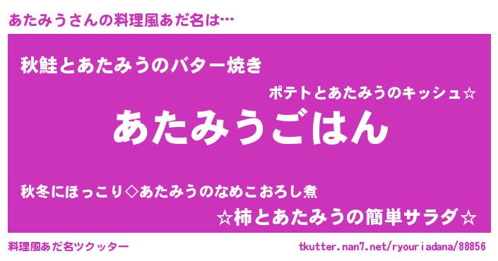 | ヘコむあだ名 | 『あたみう(笑)』『あたを』 |