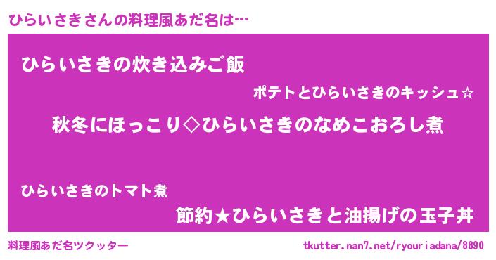 | ヘコむあだ名 | 『ひらもー』『ひらを』『豆乳』 |