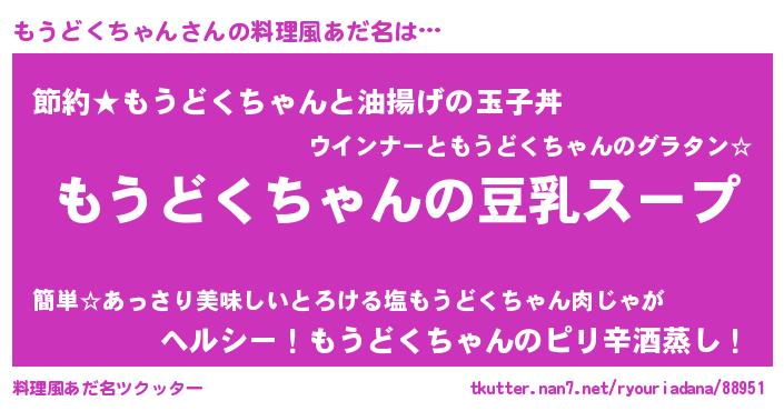 | ヒーロー風カッコイイあだ名 | 『暗黒騎士モウ』『ネオモウドクチャン』 |
