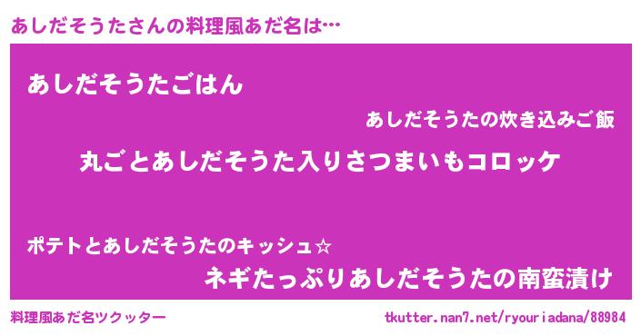 | ヒーロー風カッコイイあだ名 | 『仮面アシダー』『スーパーアシダソウタ』 |