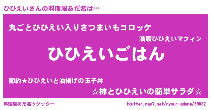 | 意味不明あだ名 | 『めかぶ科ひひえい属』『自称ひひえい』 |