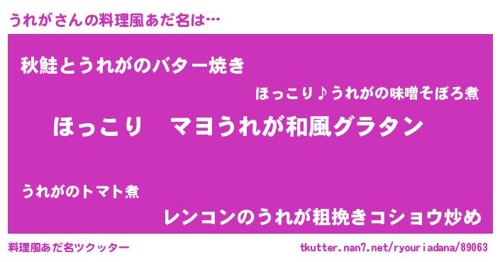 | 意味不明あだ名 | 『住所不定無職うれが(77歳)』『自称うれが』 |