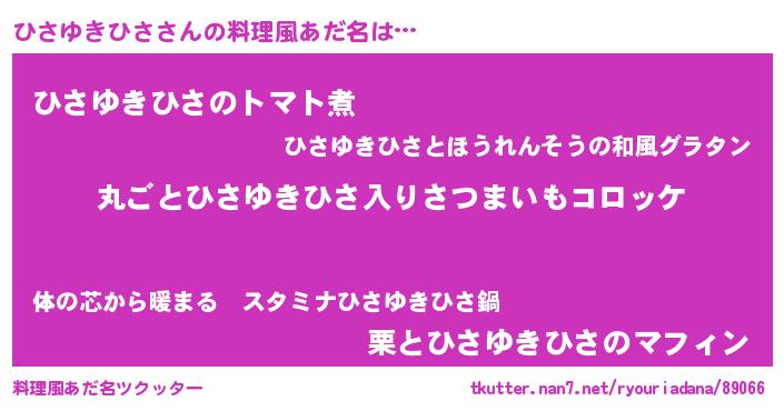 | 意味不明あだ名 | 『住所不定無職ひさゆきひさ(98歳)』 |
