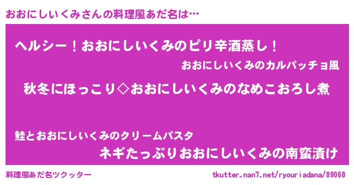 | 男性向けラノベタイトル風あだ名 | 『おおにしいくみに滅ぼされるだけの簡単なお仕事です』 |