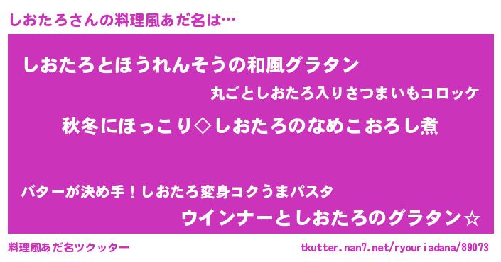 | 意味不明あだ名 | 『ヨモギ科しおたろ属』 |