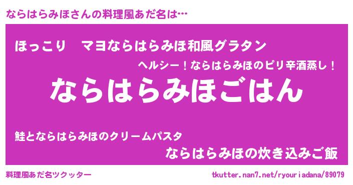 | ヘコむあだ名 | 『ならっふぃ~』『ならはらみほ(小並感)』 |