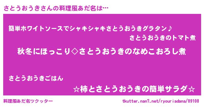 | ポケモン風あだ名 | 『サトゴンZ』『ヒサトウオウキ』 |