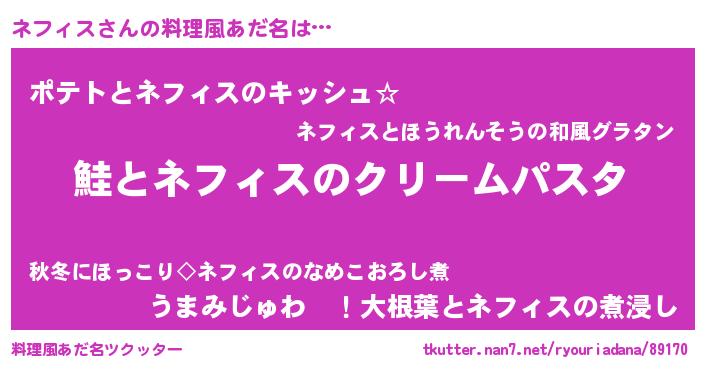 | ヘコむあだ名 | 『ネフっ子』『なまこ酢』 |