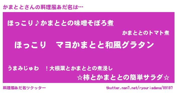 | 意味不明あだ名 | 『住所不定無職かまとと(95歳)』 |