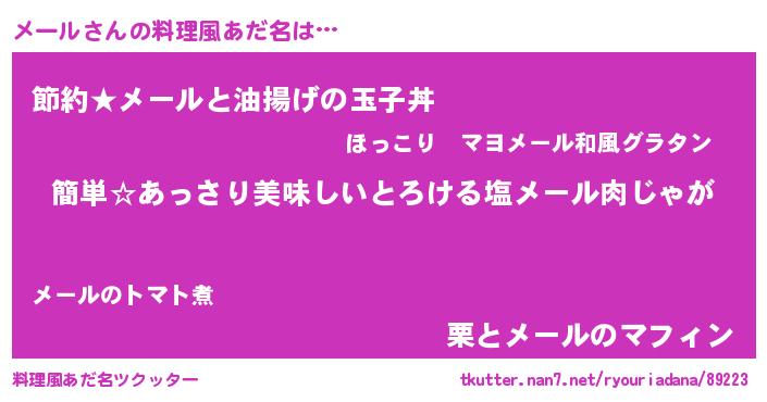 | ヘコむあだ名 | 『メール(笑)』『メーっふぃ~』 |