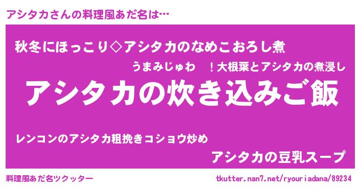 | ヒーロー風カッコイイあだ名 | 『幻影騎士アシ』『ウルトラアシタカマン』 |