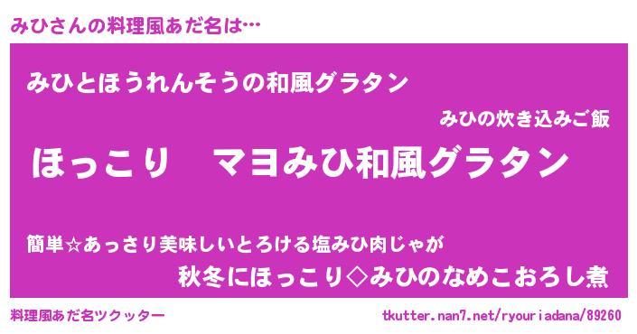 | ヘコむあだ名 | 『みひ(爆)』『みひっ子』『みひにー』 |