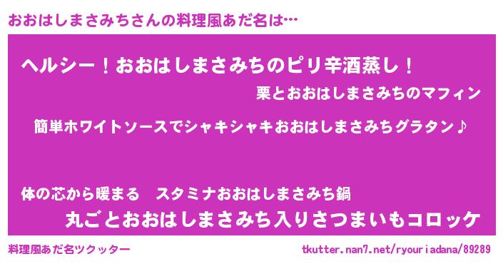 | 男性向けラノベタイトル風あだ名 | 『おおはしまさみちの嫁は女の子じゃないと思った?』 |