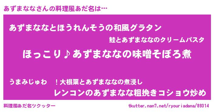 | ヘコむあだ名 | 『あずにゅー』『酢こんぶ』 |
