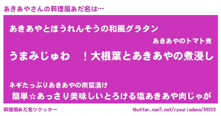 | ヘコむあだ名 | 『レバニラ』『あきあや(小並感)』 |